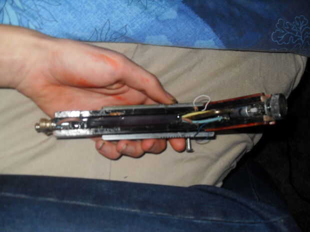 la fantasía detrás de esta pistola es thad es un arma hecho por los rebeldes en una edad de cyberpunk por bits y piezas de un viejo depósito de chatarra, el gatillo hace contacto con el dínamo crea una especie de descarga eléctrica y vuelta electrodos thad en un rayo de calor fuerza thad le haces hasta la tierra de nadie, en otras palabras te mueres!