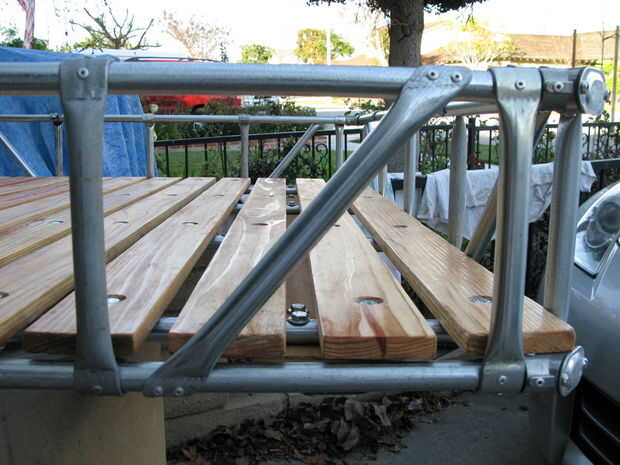 Aquí vemos los fotogramas horizontales con las piezas verticales. Otra vez, 3 remaches pop a cada conexión. He encontrado un acuerdo en el puerto de carga en una caja de 500 remaches por $3.