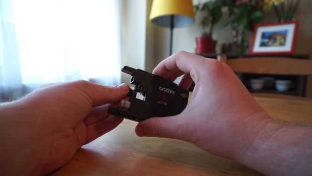 Así que pase a través y luego empuje la cinta hacia abajo. Si lo hicistes bien eres un adulto y ya no podrá ver la ventana de plástico transparente del cartucho. No más problemas.