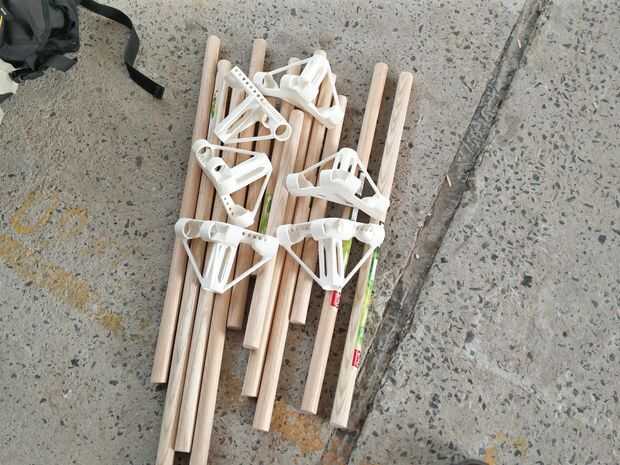 Corte sus palos al tamaño que prefieres. Dubbel comprobar si no han cometido ningún error y si tienes lo suficiente para realmente hacer la tabla.