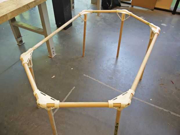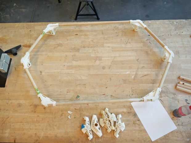 Cuando se imprimen todas sus piezas 3D, y tus palos son en el tamaño correcto, la construcción de su mesa. Deben ser capaces de pararse en su propio sin ninguÌ n pegamento en todo.