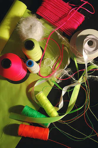 Recopilar los materiales: He utilizado cuerdas, cintas, hilo, hilo y luz negra reactiva ripstop nylon. Puede utilizar cualquier cosa que apoya su idea de diseño o pasar a tener a la mano.
