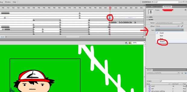 Este método se llama streaming en flash es una opción de sincronización, sonido a la línea de tiempo de cierre y corte el audio en trozos que se juegan en cada marco.