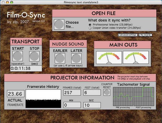 Nota: La activación es manual, por lo que se dice sincronización de película O Cuándo jugar. (Es muy fácil, sólo ver el líder de la Academia y pulsar la barra espaciadora cuando llega la marca sync.) No hay ninguna instalación para detectar una marca de inicio automáticamente. Que tomaría todavía más modificación de proyector, pero quizás algún día!