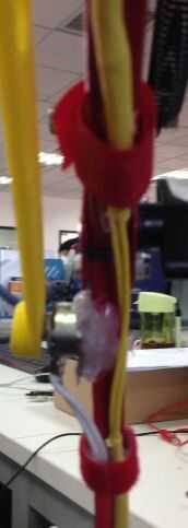 Para conseguir esto, puede utilizar el arma de pegamento caliente o cinta de Velcro o ambos. Es necesario notar que los cables no deben instalarse en las posiciones que afectan el movimiento del brazo. Paquete todos los 8 cables en la base con tubo termoplástico.