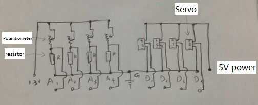 El rango de operación de cada potenciómetro es menos de 180 grados,
