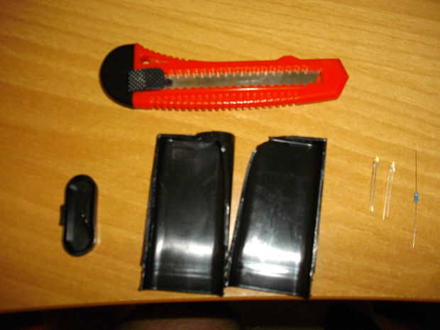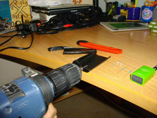 Idealmente, usted querrá cortar justo antes de llegar a la parte inferior permanece en una sola pieza, y usted puede hacer los agujeros para los LEDs hay.