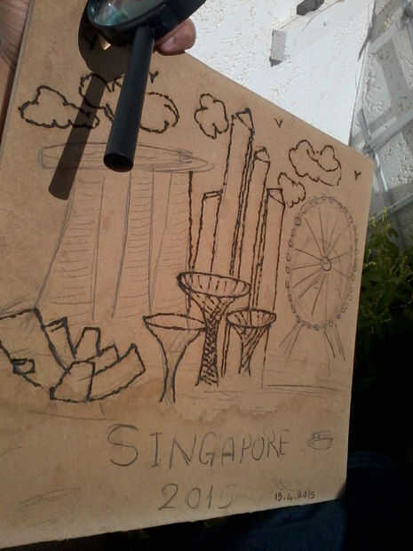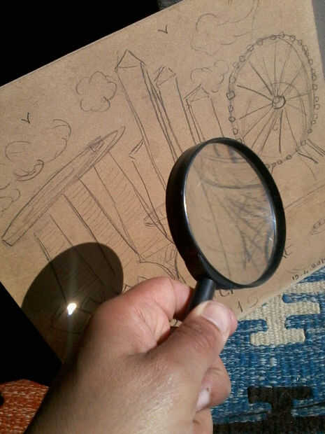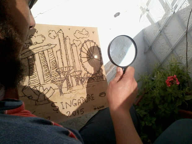 Utilice sus gafas de sol y empezar a enfocar el sol en el trazado del dibujo a lápiz de madera.