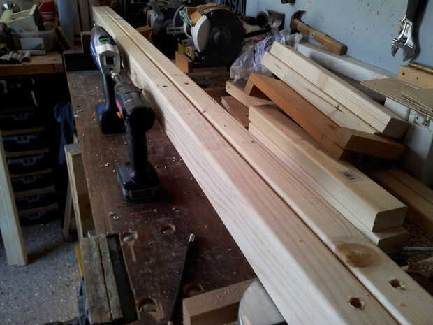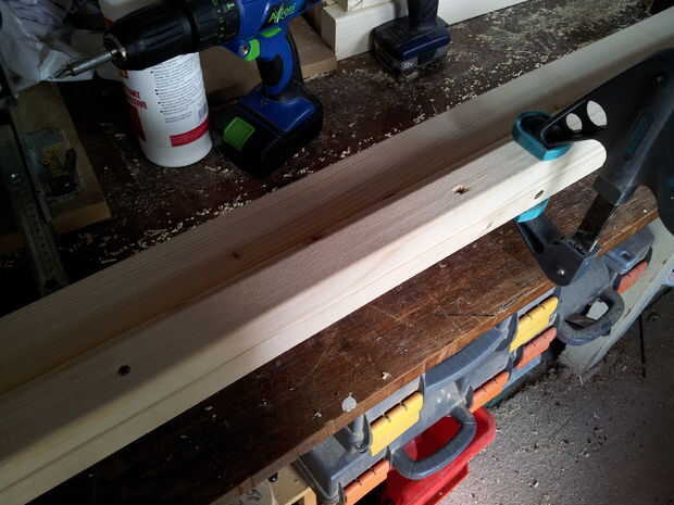 Para los lados necesita cinco longitudes de corte a 1900mm de madera. La longitud de una entonces necesita rasgar por la mitad. Taladro, tornillos y pegamento en la pieza encima de otra y luego fijar la pieza arrancó más delgada en la parte inferior dentro de la cara del lado.
