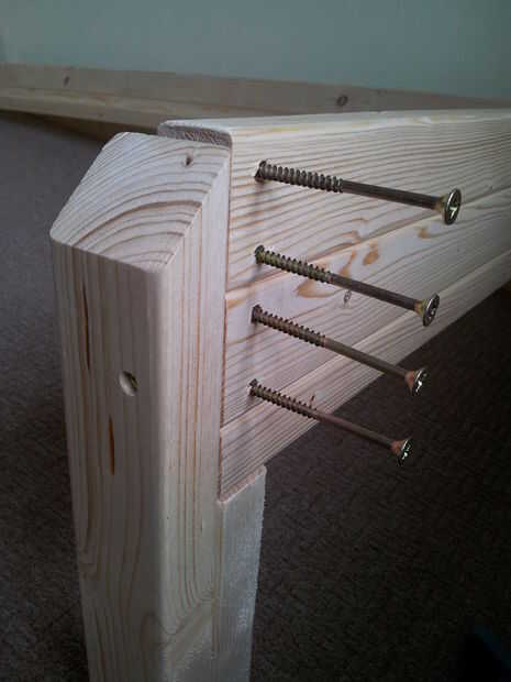 Los lados se sientan en la plataforma creada en las juntas de cabeza y de pie y se atornillan a través para garantizar.