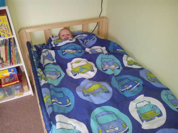 Cama e instale el niño feliz.