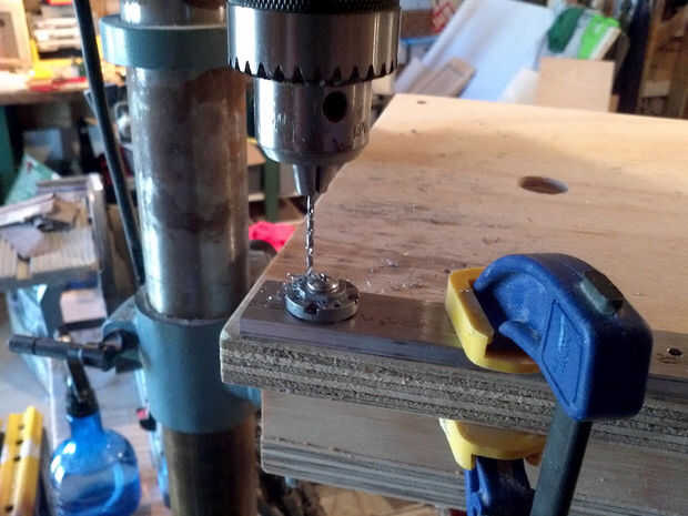 1. toque en el agujero del eje en la placa frontal con un tap de 8-32. Va a ser un poco flojo pero no demasiado.