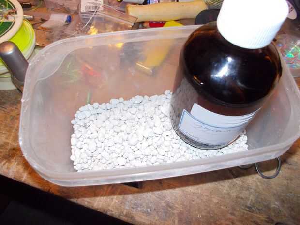 - Tierra de Batán, también conocido como calcio bentonit, a.k.a. gato basura. También se puede utilizar arcilla o talco. Aunque tierra de batán es el mejor.