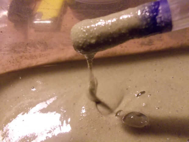 Suponer más Batán, una mezcla más densa. Añadir glicerol más, si se necesita diluir más mezcla.