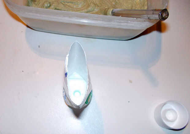 Vierta la mezcla en el tubo. Compruebe si puede cerrar la abertura sin rebosadero.