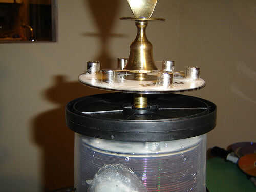Después de que el pegamento se establece, tomar uno de los conjuntos de dos discos y colóquelo sobre un poste del huso en un paquete de disco magnético previamente hecho. Los imanes debajo de ayudará a alinear los imanes de 1/2 pulgada que se van a pegar al CD y el post del husillo debe tener discos alineados. Si no tienes un paquete de disco magnético para actuar como una plantilla magnética, entonces simplemente marca de 6 segmentos iguales en el disco y la línea de los imanes para estas marcas. Pequeñas irregularidades se tolerará en esta versión del bajo-rpm (hasta 1500 rpm) presión de agua de la turbina de la CD. En el aire es una historia diferente totalmente-cosas de la presión debe ser muy bien equilibrada en ese caso.