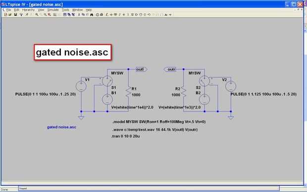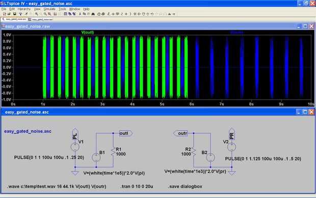 >>> actualización: aquí está una manera incluso más fácil hacer un ruido cerrado de origen-sólo multiplicar el voltaje de ruido por un easy_gated_noise.asc ver fuente pulsada, a continuación.