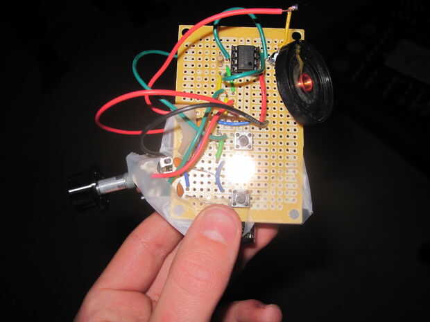 lista de piezas:BreadboardsTemporizador 555varias resistencias, condensadores, potenciómetros y casi todo con las 2 piernas(Kit deJameco )Saltar los alambresAltavozAmplificadorDescripción:El plan comenzó simple. Puesto que nadie tiene mucho conocimie