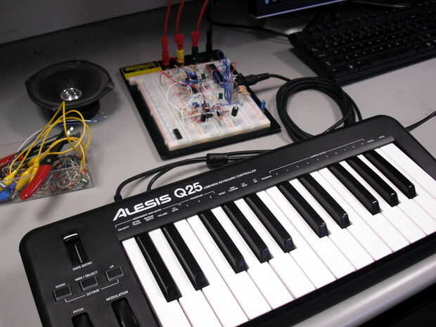 Tuning es un problema en las octavas superiores, como se muestra en el video, pero se solucionará pronto. El video muestra el funcionamiento de un voltio por octava escala y control MIDI con el teclado. Por favor enviar cualquier comentario sobre mi proyecto o ideas de lo que debe añadirse en el futuro revisiones. ¡ Gracias! : D