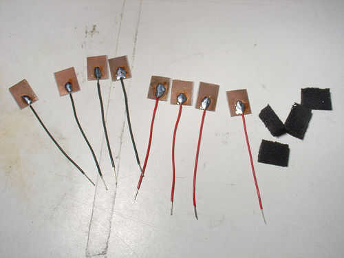 Plusea hace algunas FSRs DIY genial, pero usé mi propio estilo, ya que no tengo los mismos materiales disponibles. Para FSRs de Plusea, se trabaja con alrededor de 200 ohmios - máximo 200 kiloohms. Para la mina, se trabaja con 5-15 megaohms máximo. FSRs comerciales están en un rango similar (por ejemplo, es alrededor de 20 megaohms sin carga) . Esta máxima resistencia es importante tener en cuenta cuando esté seleccionando los condensadores.