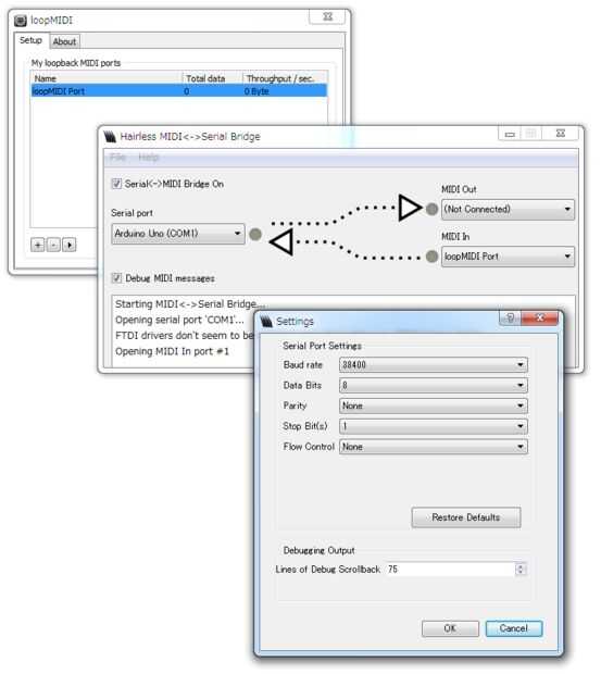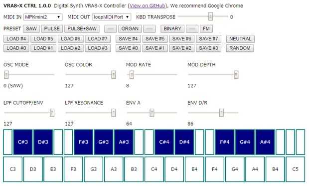 Hecho por ISGK instrumentoshttps://github.com/risgk/digital-Synth-vra8-mConceptoSintetizador monofónico (módulo de sonido MIDI) para Arduino UnoCaracterísticasSerial MIDI en (38400 bps), tasa de salida (Pin 6), de Audio PWM PWM: 62500 hertziosTarifa