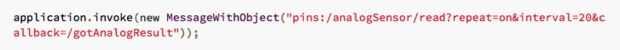 Una vez que se configura el pin analógico, la aplicación de las encuestas a la entrada analógica cada 20 milisegundos.