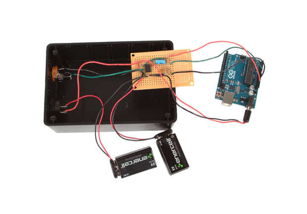 Conecte los cables de 5V, tierra y A0 de la DC Offset en el Arduino.