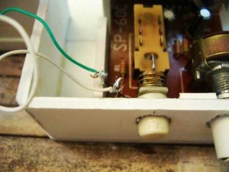 Antes de montar el muelle, hacer un agujero para el interruptor de potencia y control de volumen en la parte delantera de la carcasa de muelle.