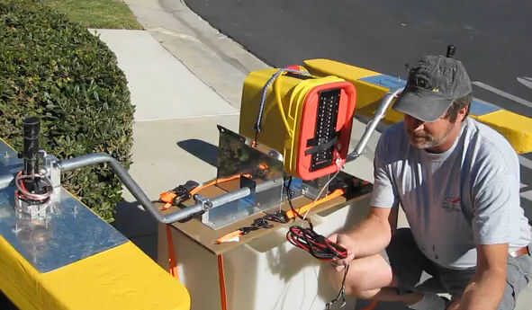 Mi costo total para este proyecto hasta ahora, no incluyendo la Spectrum DX7 transmisor, está alrededor de $1300, con los gastos más importantes están: controlador de Motor ($430), 2 Min Kota Trolling Motors ($240), aluminio ($135), batería ($90) y el cargador ($60). También: 32 LEDs, varios Cables, conectores, interruptores y I.C.s ($175 +), RC receptor ($60), pernos de leva ($40), Arduino Backup uController ($35), etc.... Tenga en cuenta que realmente hizo todo el camino a través de mi proceso de diseño y desarrollo sin soplo original Arduino!