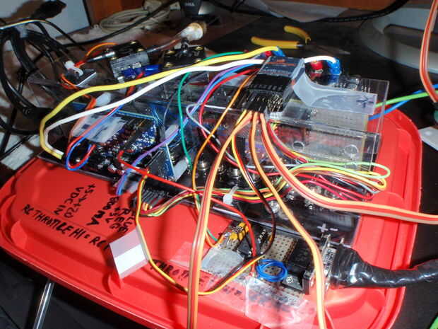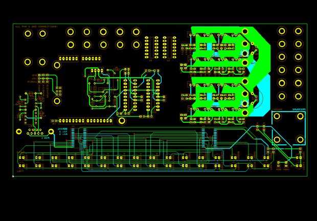 Espero tener mi diseño de PCB (Printed Circuit Board) terminado a tiempo para mi siguiente iteración de este proyecto. La última foto que se adjunta a esta sección muestra cómo que viene a lo largo. Aún tiene que decidir si seguir adelante con la incorporación de la sección de conductor del Motor (se muestra en negrita verde brillante) para el diseño de PCB ya que estoy muy a gusto con el producto de soluciones robóticas en este momento. Todos los otros sub sistemas, excepto el receptor RC Digital, ciertamente serán incorporados.