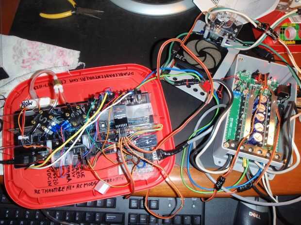 Usé un muy robusto controlador de Motor, el RS160D (~ $430), de soluciones robóticas (www.Robot-Solutions.com). es como si este controlador fue diseñado específicamente para mi proyecto contemplada virtualmente cada funcionalidad requerida. En realidad, la principal intención de usuarios son esos tipos que hacen los robots gigantes de combates.