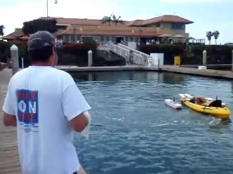 La salvedad es que el transmisor de RC es un poco más intuitivo y extremadamente fino control del kayak. Con unos minutos de práctica, sin embargo, un jinete de SORBO y soplo puede aprender, por ejemplo, el kayak de nuevo precisamente en la esquina de un muelle, o dirigir hacia abajo un channelway bobina de 10-15 pies de ancho.