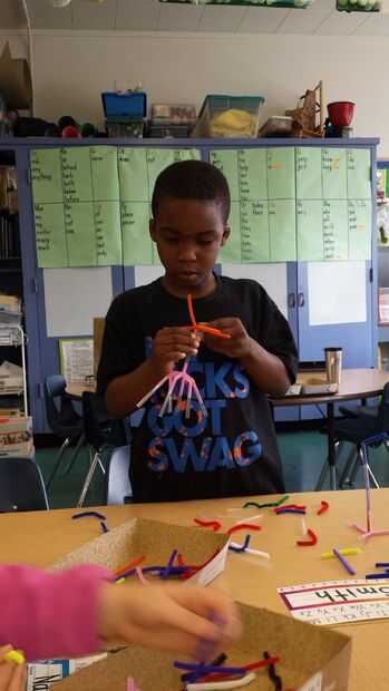 La semana pasada, ocupó vanamente con tiras de papel y grapadoras. ¿Alguien tiene la oportunidad de jugar más con los materiales y herramientas? Permiten a los estudiantes compartir sus exploraciones más. Si tienes muchos estudiantes con las manos en el aire, tome un momento para hacer una "cuota de par" donde convierten a la persona sentada junto a ellos y decirles acerca de lo que crearon. Recuerde a los alumnos que una parte importante de jugar es compartir nuestras ideas con nuestros compañeros.