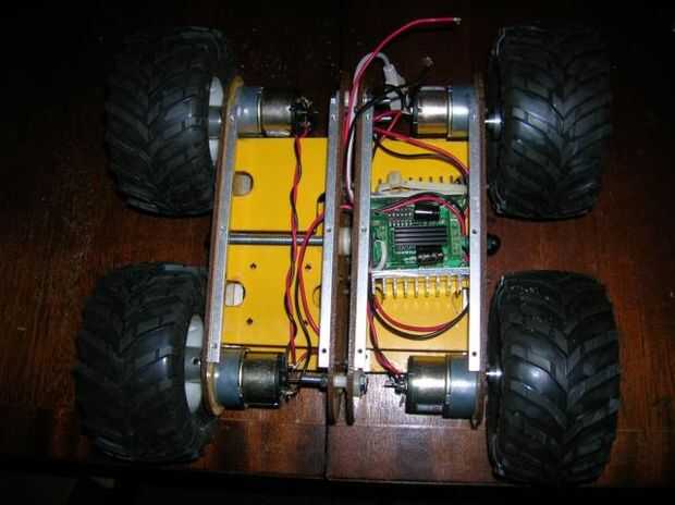 El rover fue montado fácilmente y cableado los motores con el cable de una fuente de PC vieja. He probado cada motor en ambas direcciones por lo que podría crear dos pares coincidentes, un par para el lado izquierdo y un par para el lado derecho. Si el rover tiró a un lado, se podría recortarse fácilmente hacia fuera.