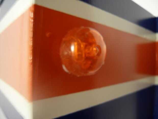 He buscado un sistema de advertencia intermitente pequeño, barato y potente para el robot que se ha insistido por razones H & S, pero como con todo, decidí hacer mi propia. Compré 6 ultra brillante ámbar LED que necesito punto de frente, hacia atrás y hacia el exterior, un juego para cada lado del robot. Luego fui a mi tienda local de bricolaje y ha buscado por todas partes un pequeño poco ámbar de plástico para montar en. He encontrado que algunas pequeñas pilas ventiladores portátiles para 99p cada que tenía una cúpula de plástico color ámbar transparente en el extremo que pensaba que iba a hacer muy bien. Hice un rápido circuito 555 temporizador a destellar en el intervalo correcto y funciona todo de la barra de alimentación principal.