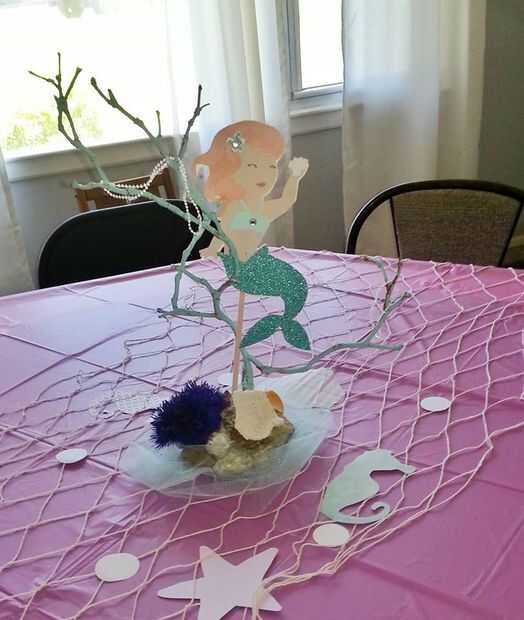 Añadir algunos peces de la tienda de dólar malla en color coordinación manteles y añadir una pieza central. Corte formas de animales del mar y la dispersión alrededor de la pieza central.
