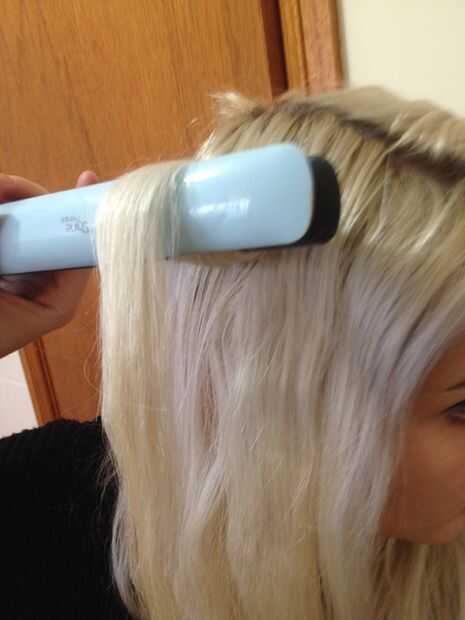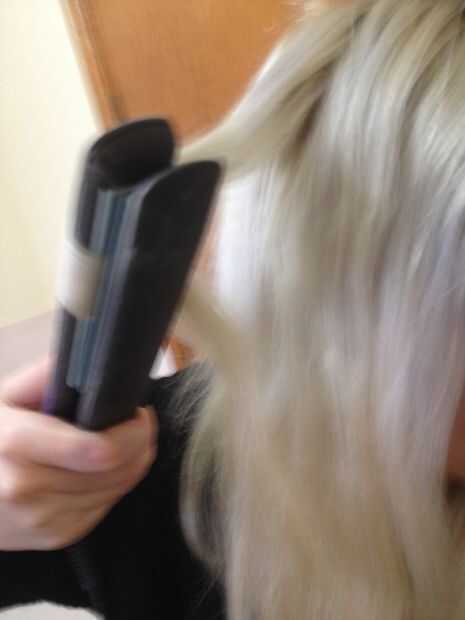 Tomar la plancha y afiáncela con abrazadera a partir de las raíces del pelo y sostenga en ese uno punto y gire hacia adentro el hairstraightener. Holfen durante 5-10 segundos luego suelte la abrazadera y bajar 1cm y fijar otra vez. Toque el hairstraightener hacia fuera. Continuar este 1 cm hacia abajo girando hacia arriba y hacia abajo.