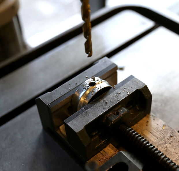 Para hacer la base, perfore agujeros en el centro de dos soportes de la tubería. Asegúrese de que los orificios estén alineados cuando los soportes están montados en la placa base.