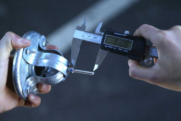 Una vez que se establece la ubicación, medir la longitud del tornillo que sobresale de la placa de base metálica. Ajustar la guía en el taladro de martillo (un aparato que parece un cruce entre un martillo de gato y una pistola de rayos) por lo que coincide con la longitud a medir. Esto te mantendrá de perforación demasiado profundo. Asegúrese de que también cambie la broca con una broca para mampostería, que se significa para taladrar en asfalto.