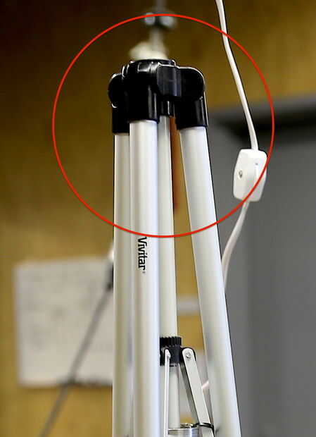 Use una sierra de mano para eliminar el trípode de cámara de liberación rápida. El trípode es de fina, Halloween aluminio, para que sacarlo es relativamente indolora.