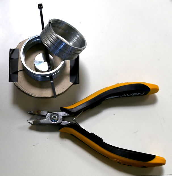 Cuando se encuentra la longitud perfecta, habrá un montón de exceso furtivo. Utilice un par de cuchillas para cortar el las bobinas exceso. Guardar unas bobinas exceso para que pueda prestar el furtivo al trípode con ataduras de cremallera. Entrecruzan dos código postal lazos alrededor de las bobinas de exceso y las patas del trípode y ajuste.
