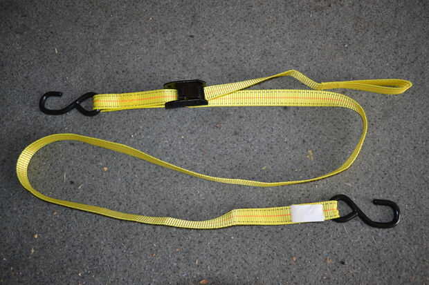 2 - 1 "x 6' con cinturones de fijación. Recogí estas que en mi local puerto de la carga de $7,99. Son un montón de fuertes y han funcionado bien.