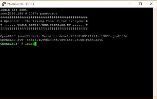 - entonces se le pedirá una contraseña. (nota que los personajes no aparecen al teclear la contraseña, esto es normal). Tipo en openelec y presione Entrar.