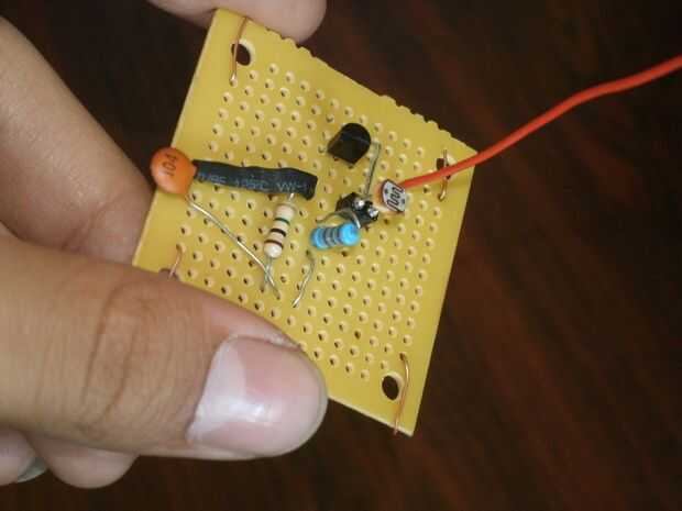 3. Añadir los transistores, te recomiendo usando el transistor PNP 2N3906 si tienes un M 1 LDR en luz, o el transistor de NPN 2N3904 para M 1 LDR en oscuridad, sólo prestar atención a la polaridad, de izquierda a derecha los pines son (emisor, Base, colector) para ambos transistores, si usas la PNP puso el emisor a la línea de alimentación positiva , si usas el NPN conectar el colector a la línea de alimentación positiva.