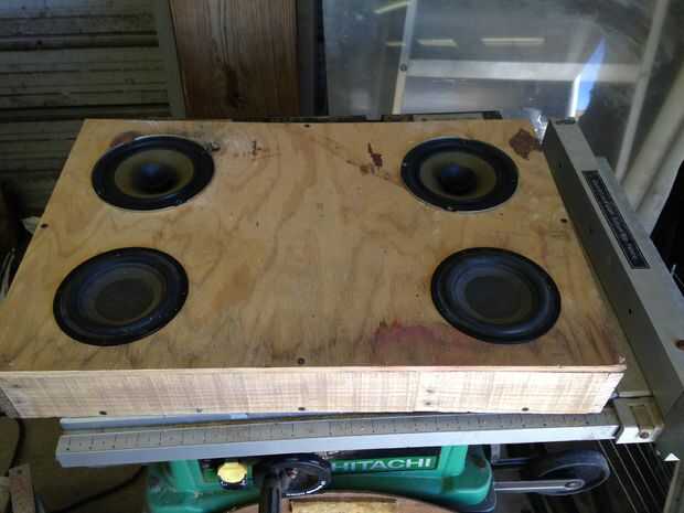 Para el recinto he utilizado una hoja de madera contrachapada que tenía en la mano y algo de madera de palets viejos. Trate de craigslist para plataformas gratis y desechos de madera. Construcción de la caja es bastante simple. Recuerda taladrar agujeros piloto antes de atornillar en su recinto. Esto evitará que la madera de separación y fragmentación. Al decidir la ubicación de los altavoces, intenta distribuirlos lejos de los cables de poder y de su receptor de bluetooth.