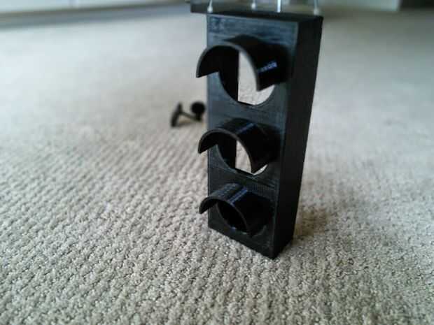 Después de que la luz se hace impresión Retire todo el material de apoyo, he encontrado que es más fácil quitar el material con pinzas por romper hacia los lados en lugar de intentar rasgar hacia fuera hacia usted. Si hay cualquier asperezas utilizan una lima o papel de lija para limpiar para arriba. Si los orificios para fijar la espalda a la luz contienen plástico, rebaje con una broca de taladro. Ahora que se ve limpia, inserte el gancho de la pared en la ranura, se requieren algunos empujando pero mantenga sólo aplicar presión hasta que se desliza a través de, una vez que ha asegurarse de que puede girar. A continuación, utilice una pistola de pegamento caliente para fijar los difusores de luz delante de los tres círculos delante de la luz. Mantenga la pistola de pegamento caliente, ahora tenemos que añadir la tornillería para sujetar la espalda en su lugar. Gire el tornillo hacia abajo añadir un punto de pegamento en el canto donde los hilos de rosca finalicen y levante el perno de dentro de la luz del semáforo para que los hilos de rosca sobresalgan de la parte de atrás y hasta que el pegamento se seca. Repita este proceso para los tres lados restantes. Poner el forro sobre la luz y fijarla con las tuercas