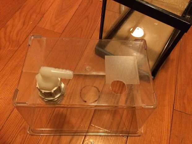 Entonces dirigí los orificios de entrada y salida, que necesita 2 orificios en la parte inferior de su contenedor plástico. Tomé mi 1" PVC (ingesta) y mi 1" acoplador (outtake) y trazó una reseña de cada uno en la parte inferior de plástico y utiliza una muy pequeña broca inicialmente, con mucho cuidado (para no crear grietas) y luego un archivo para los cantos.