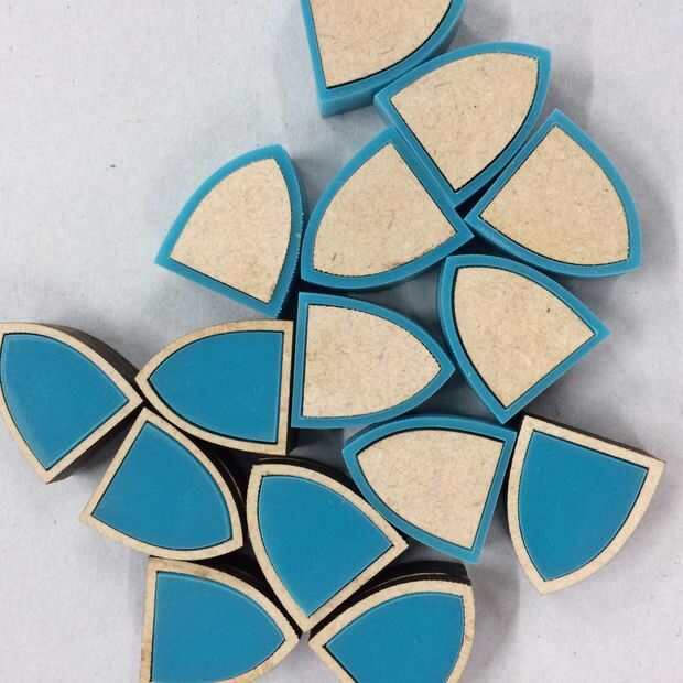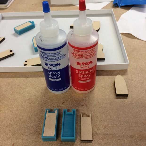 Repita el proceso para las damas, pegar la base, la arista y la chapa a la vez usando la resina de epoxy en 2 partes.
