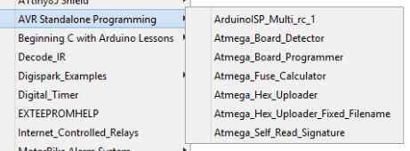 Si todo hasta ahora ha funcionado, ahora debe tener un ATmega328p que piensa que es un Lilypad Arduino. Ahora encontrar el bosquejo de ejemplo llamado 'Arduino como ISP' y en subir a tu Arduino Uno/Nano/Mega. Esto significa que tu Arduino está actuando ahora como un programador ISP, desde este punto se utiliza la opción 'Subir usando programador' en el IDE de Arduino > Sketch menú y no el botón 'Subir'. Si usted utiliza el botón 'Subir' que escribirá 'Arduino como ISP' bosquejo y tu Arduino ya no actuará como un programador ISP. Usted tendrá que volver atrás y volver a subir el sketch de 'Arduino como ISP'.