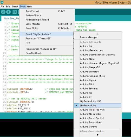 Abierta la ventana Monitor Serial en el IDE de Arduino y usted debe ver una opción para grabar bootloader 'Lilypad' o 'Uno'. He elegido 'Lilypad' puramente ya que utiliza un oscilador interno para su fuente de reloj en lugar de un cristal externo (menos componentes). Velocidad de reloj de 8MHz es más rápida para esta aplicación. Seguir adelante y pulsar 'L' y el Arduino deben cargar su ATmega328p con el gestor de arranque de Lilypad.